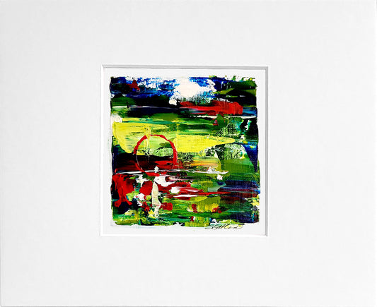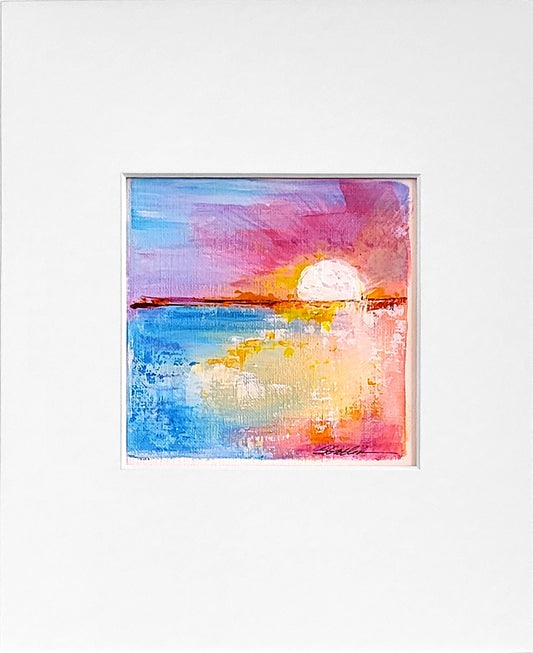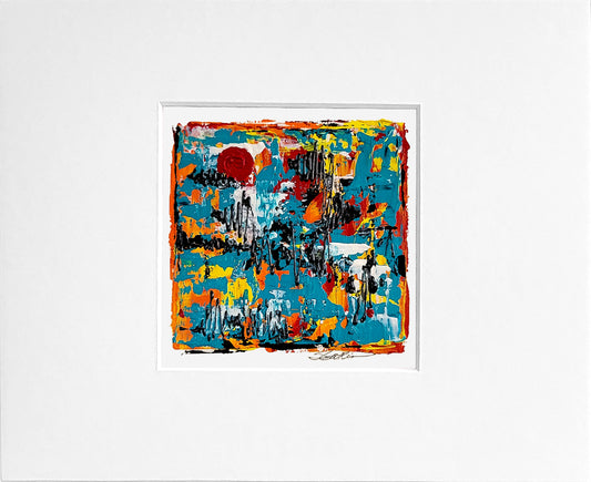 Matted signed acrylic palette knife paintings. Frame ready art. All artwork is in a 4x4 inch die cut window of an 8x10 inch white mat.