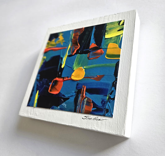 I have been surrounded by extremely talented artists my entire life; my father, my husband and my son, Alex. I was an art major in high school and college, however, my time for art is now in my retirement years. Pure joy is in paint. Happiness happens on the finished canvas. Recently, inspired by and mentored by two brilliant artists, Arlene Towne and Bonnie Miller, I have found my joy and my happiness at the end of a pallet knife through the use of color, texture and imagination on my own abstract journey.